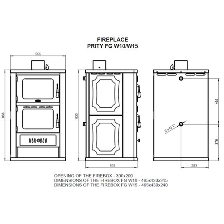 Водонапорна печка на дърва с отделение за печене Prity FGW15 - 19,8 kW
