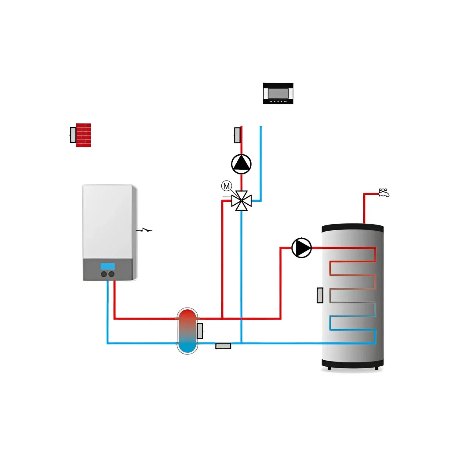 Acest regulator de circuit de încălzire asigură un control constant, în funcție de vreme, al temperaturii pe tur, utilizând senzorul de temperatură exterioară inclus. De asemenea, controlează motorul vanei de amestec pentru a asigura o creștere a debitului de retur atunci când se utilizează o vană de amestec cu patru căi. Acest lucru face încălzirea mai eficientă, iar dumneavoastră beneficiați de o utilizare optimă a energiei.