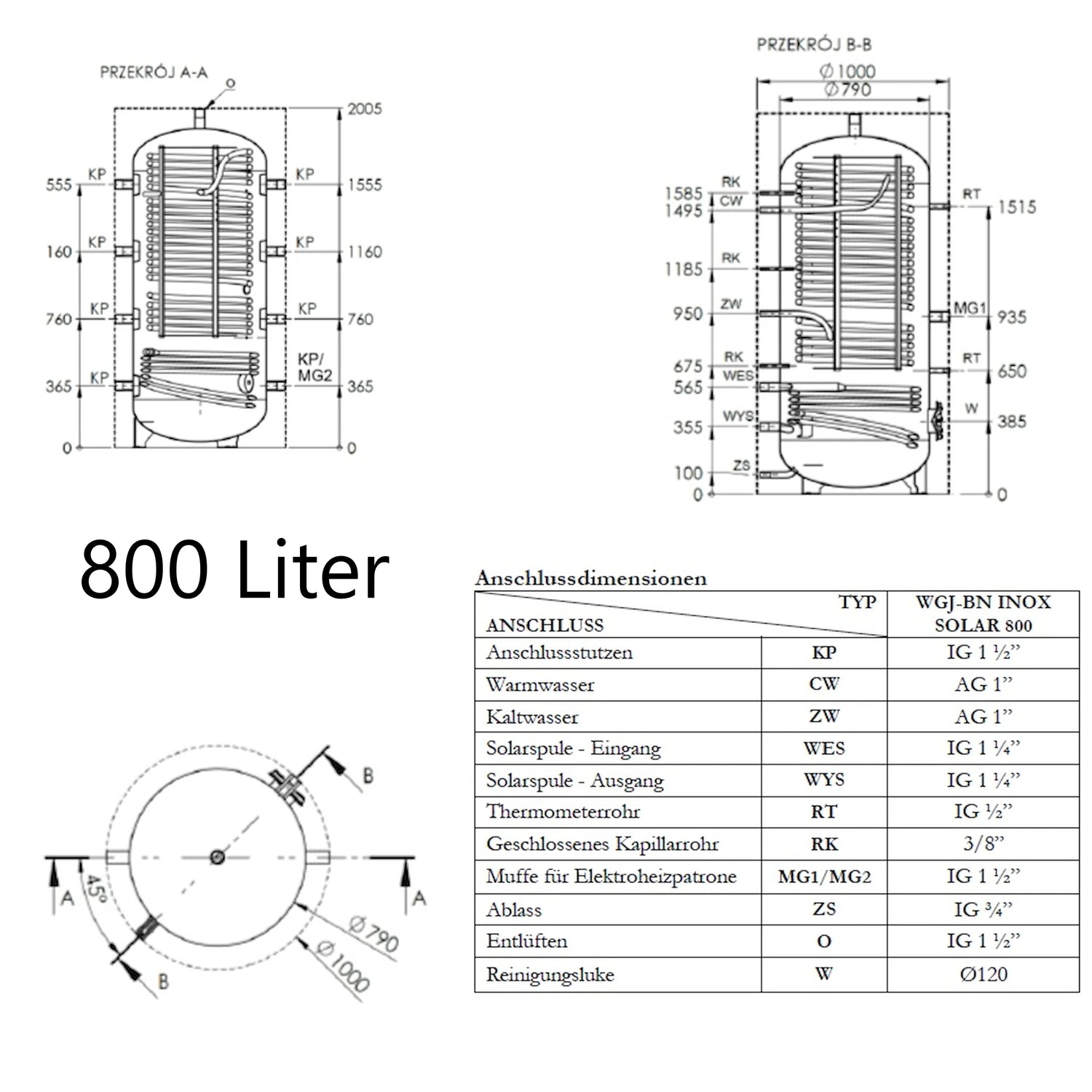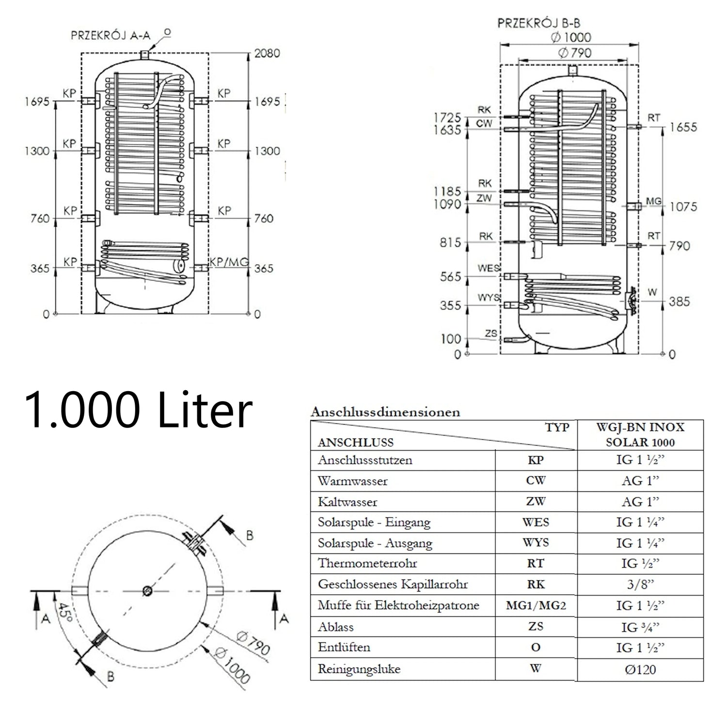 WGJ-BN INOX SOLAR je kombinovaný vyrovnávací zásobník pro ohřev vody a teplou užitkovou vodu s integrovanou topnou spirálou z nerezové oceli jako výměníkem tepla. Byl navržen pro integraci do systémů ústředního topení s kotli, tepelnými čerpadly nebo pro využití solárního tepla a umožňuje jak akumulaci topné energie, tak i nepřetržitý ohřev pitné vody.