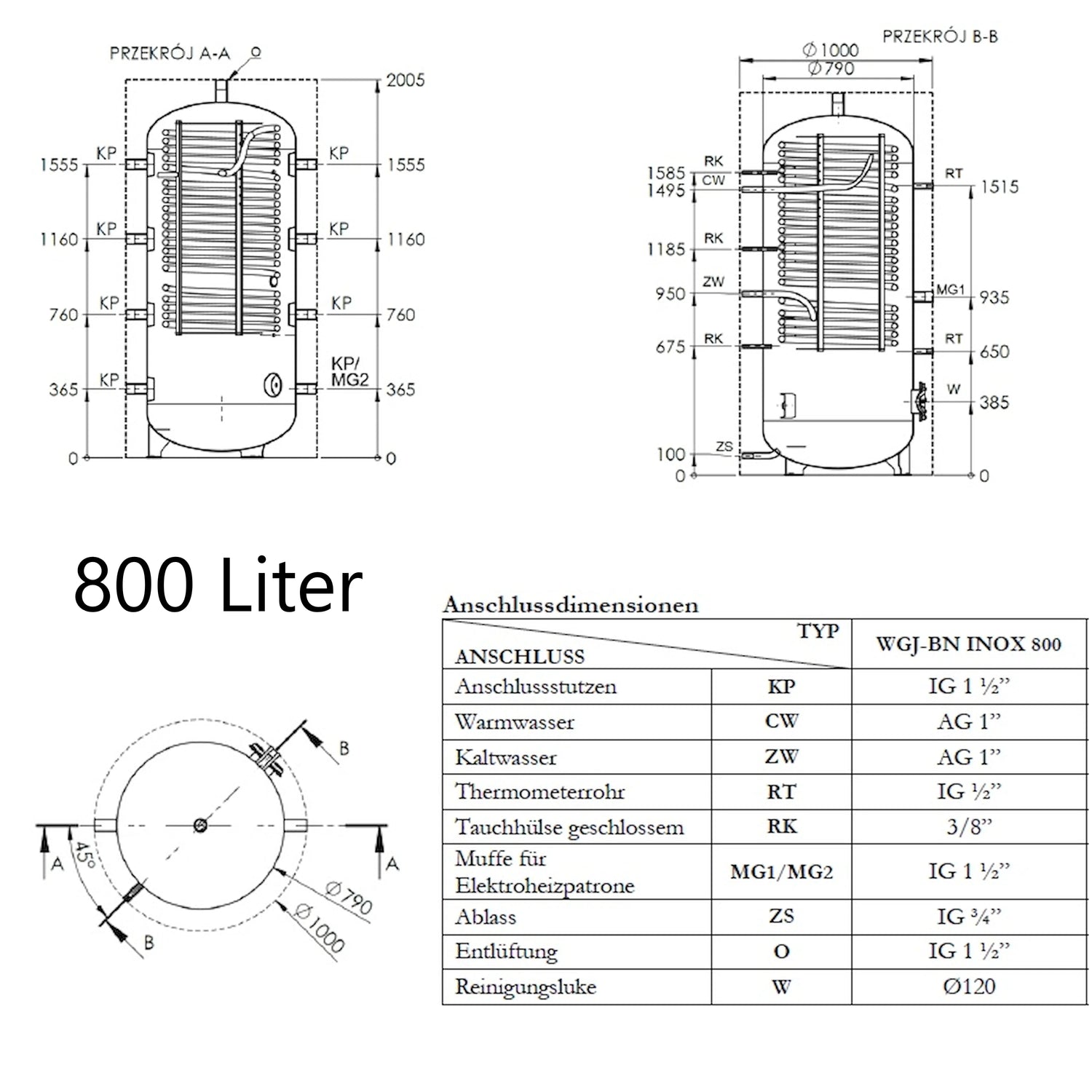 Το WGJ-BN INOX συνδυάζει μια δεξαμενή αδρανείας για τη θέρμανση νερού με έναν ενσωματωμένο θερμοσίφωνα ζεστού νερού χρήσης. Στο εσωτερικό, ένας κυματοειδής σωλήνας από ανοξείδωτο χάλυβα λειτουργεί ως εναλλάκτης θερμότητας, παρέχοντας μια μεγάλη επιφάνεια επαφής για γρήγορη και αποτελεσματική ανταλλαγή θερμότητας και επιτρέποντας την στιγμιαία θέρμανση νερού. Η μέγιστη πίεση λειτουργίας της δεξαμενής είναι 0,3 MPa.