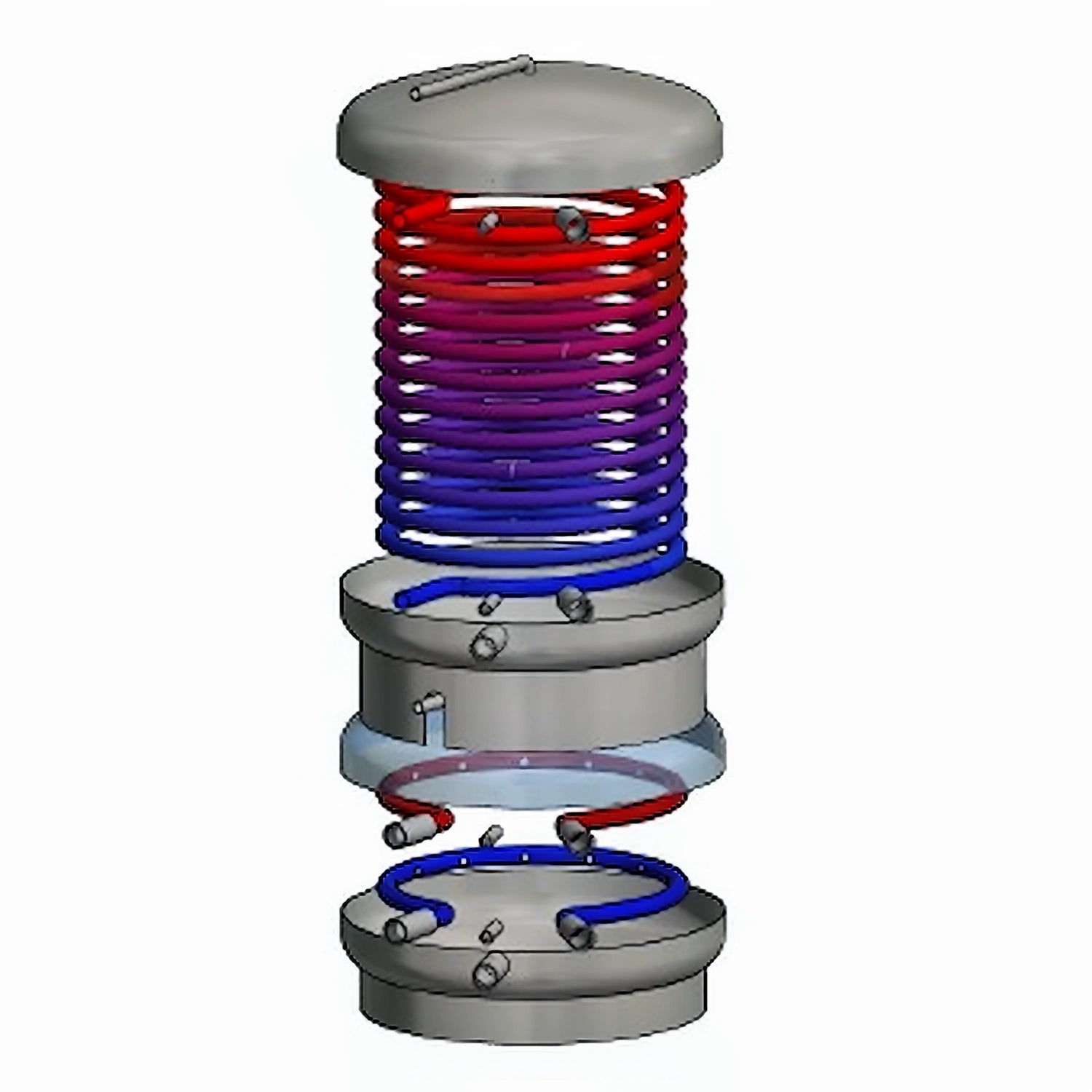 Η δεξαμενή αποθήκευσης είναι κατασκευασμένη από χάλυβα ποιότητας S235JRG2 σύμφωνα με το DIN 4753 και το ευρωπαϊκό πρότυπο EN 12897. Ο εναλλάκτης θερμότητας πόσιμου νερού είναι ένας κυματοειδής σωλήνας από ανοξείδωτο χάλυβα (1.4404) που κατασκευάζεται στη Γερμανία. Η δεξαμενή είναι ακατέργαστη εσωτερικά, ασταρωμένη εξωτερικά και χωρισμένη σε δύο θερμικά διαχωρισμένα τμήματα: θέρμανση γλυκού νερού στο πάνω μέρος και αδρανής θέρμανσης στο κάτω μέρος.