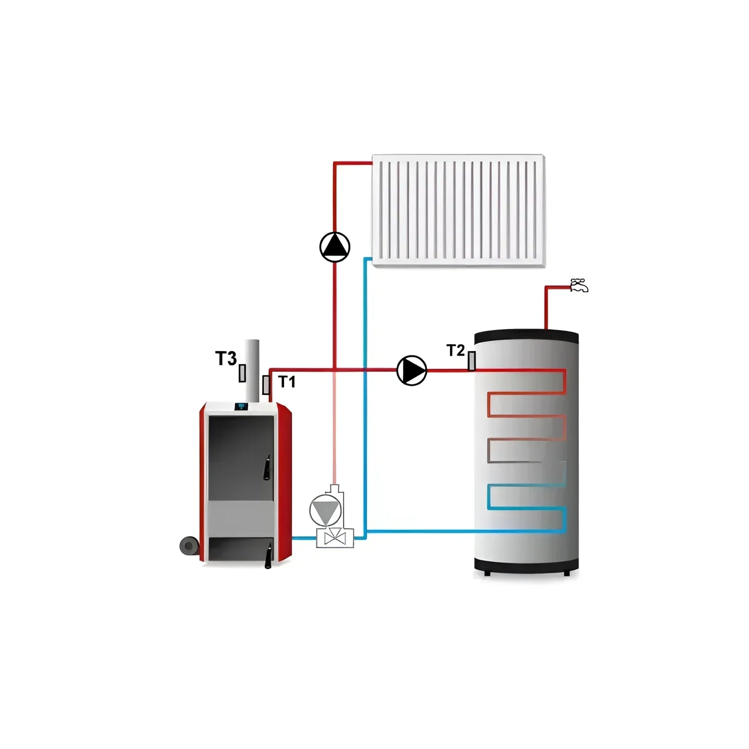 La protección de temperatura integrada previene el sobrecalentamiento, mientras que el sensor de gases de combustión optimiza la eficiencia de la caldera y aumenta su seguridad. Además, el controlador incorpora sensores duraderos con un rango de resistencia de temperatura de -25 °C a 90 °C, lo que lo hace especialmente robusto y fiable.