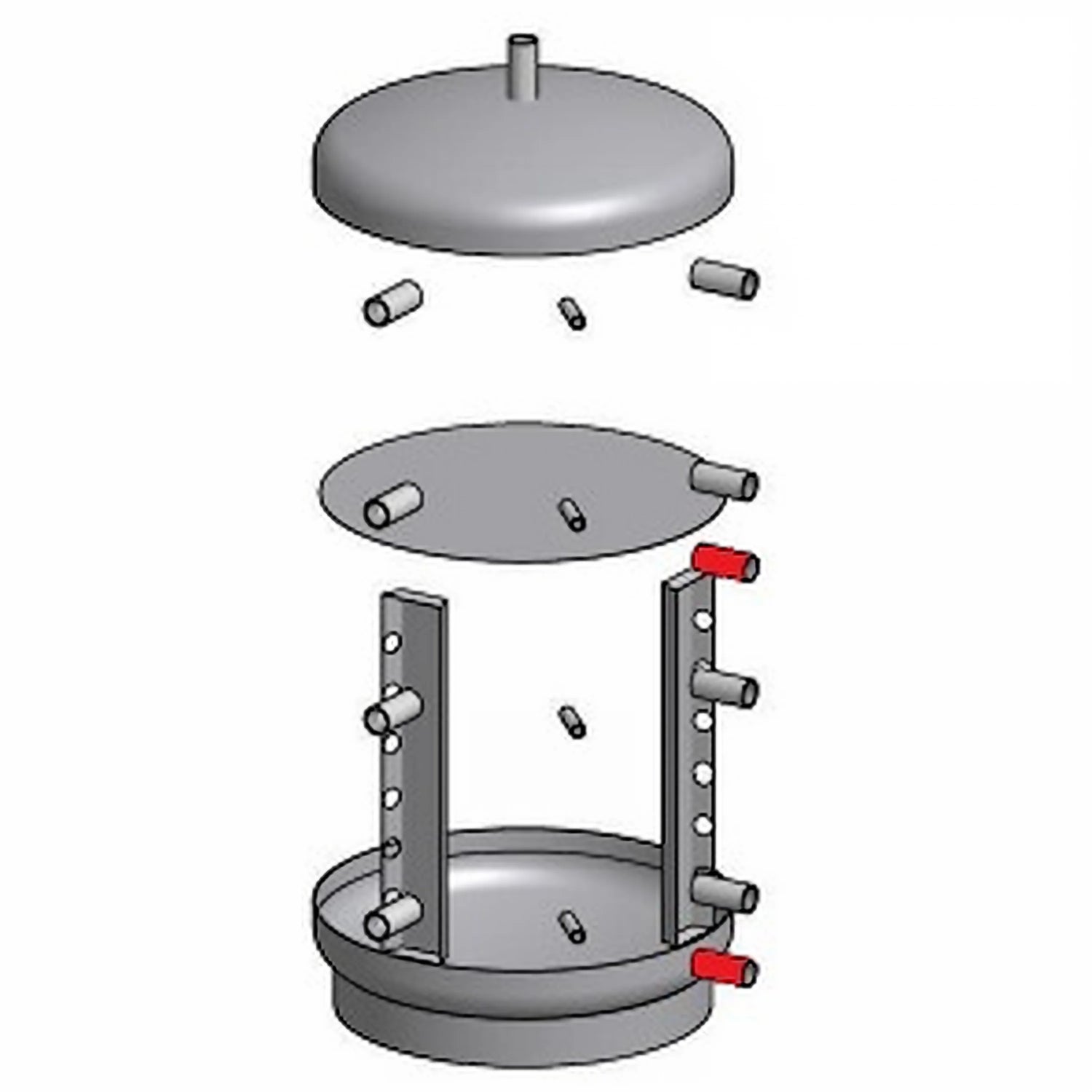 Kihistumise parandamiseks on integreeritud kihistuskanalid ja keevitatud kihistusplaat. Hülsid on paigutatud 90° nurga all, mis lihtsustab mitme mahuti paigaldamist ja ühendamist.