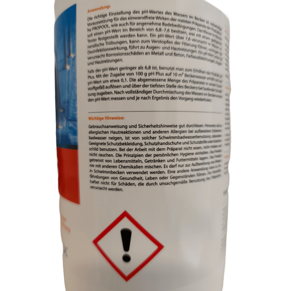 Palun järgige alati kasutusjuhendit ja ärge kunagi segage pH plus graanuleid teiste kemikaalidega. See toode on ette nähtud ainult basseinide vee töötlemiseks ja tootja ei vastuta väärkasutusest tulenevate kahjude eest.
