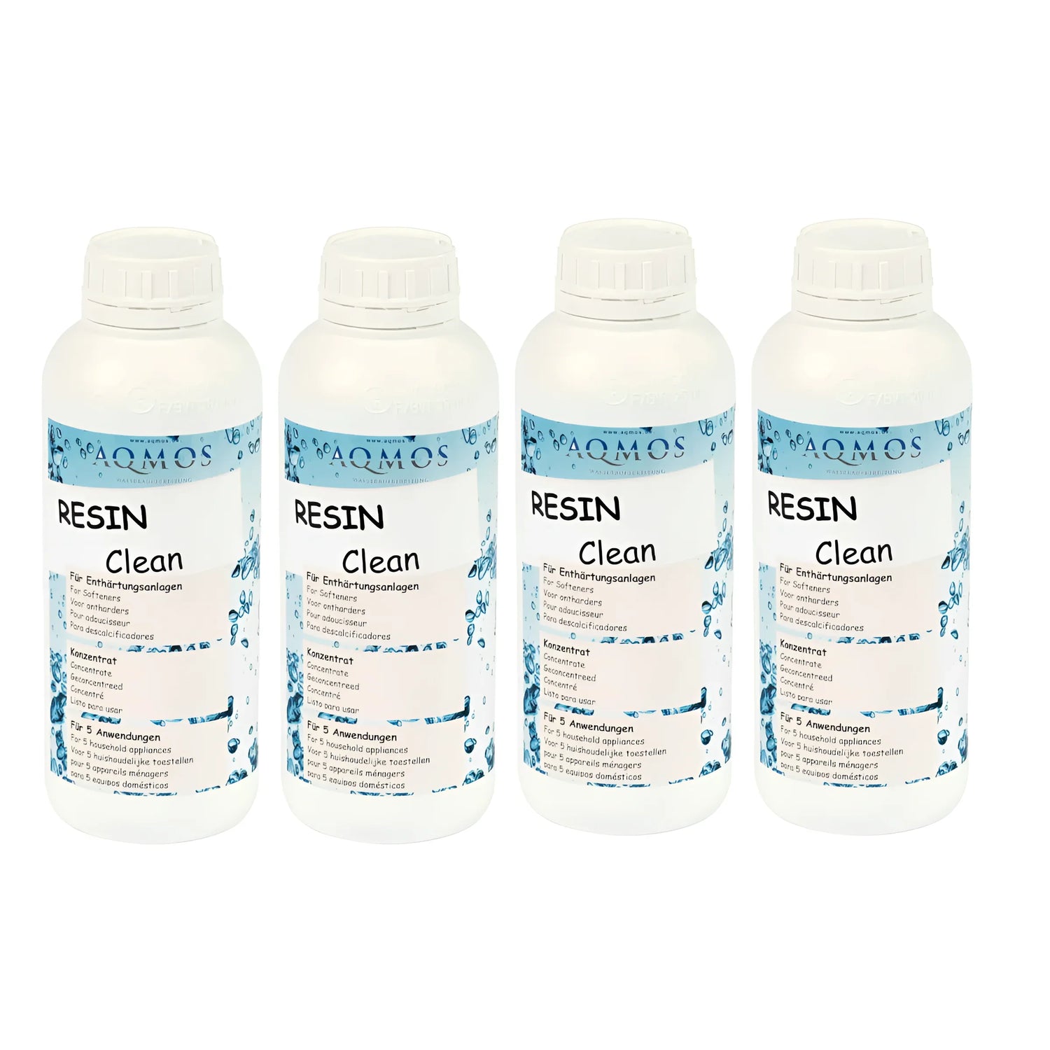 Resin Clean est composé d'eau déminéralisée, d'acide phosphorique pour un détartrage efficace et de chlorure de benzalkonium comme conservateur et désinfectant. Cette combinaison assure un nettoyage et une stérilisation en profondeur du lit de résine.