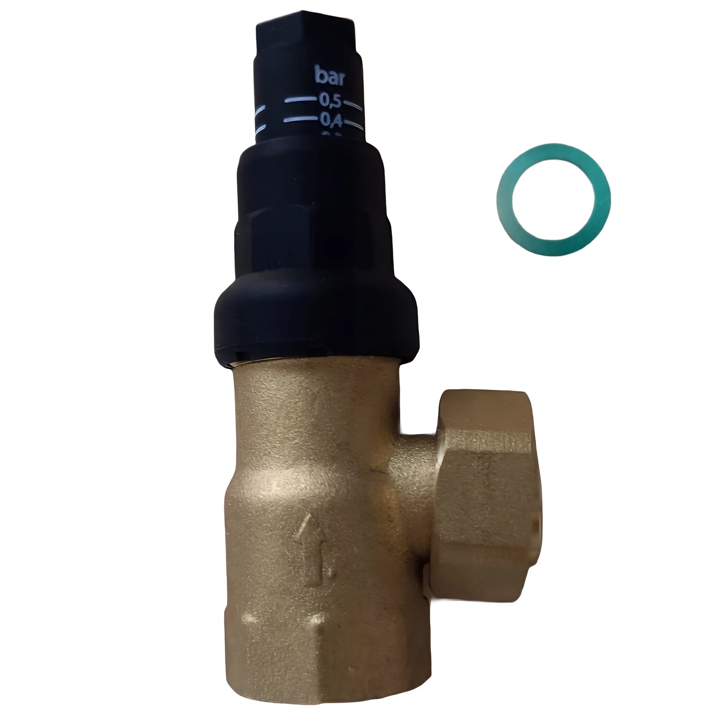 Dostupno u ravnoj ili kutnoj verziji koja štedi prostor; priključci: ulaz G¾ unutarnji navoj, izlaz s ravnim brtvljenjem i G¾ spojnom maticom. Podesivi tlak je kontinuirano varijabilan između 0,1 i 0,5 bara.