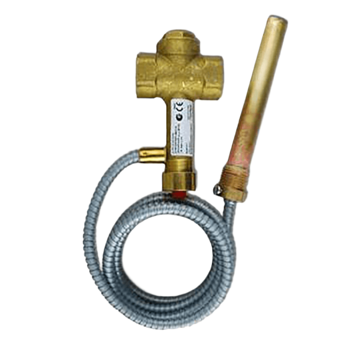 Dispozitiv de siguranță la descărcarea termică pentru centralele termice Defro cu schimbător de căldură de siguranță integrat