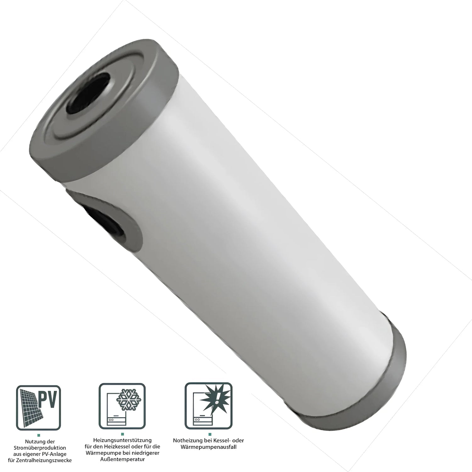 Equipado com uma conexão para um elemento de aquecimento de 1 1/2" IG, o módulo impressiona pela sua construção robusta e carcaça isolada. O interior é feito de aço bruto e protegido por uma estrutura externa com revestimento em pó, garantindo durabilidade.