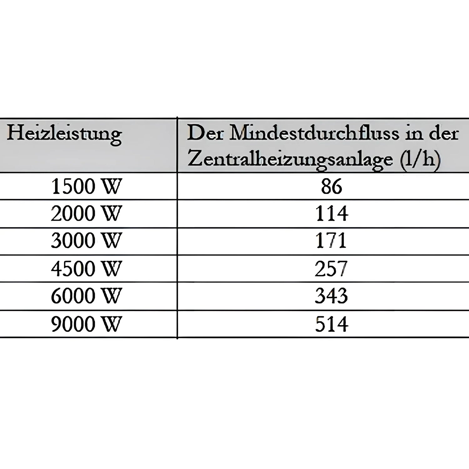 • Fluxo mínimo: 6,0 kW/343 l/h