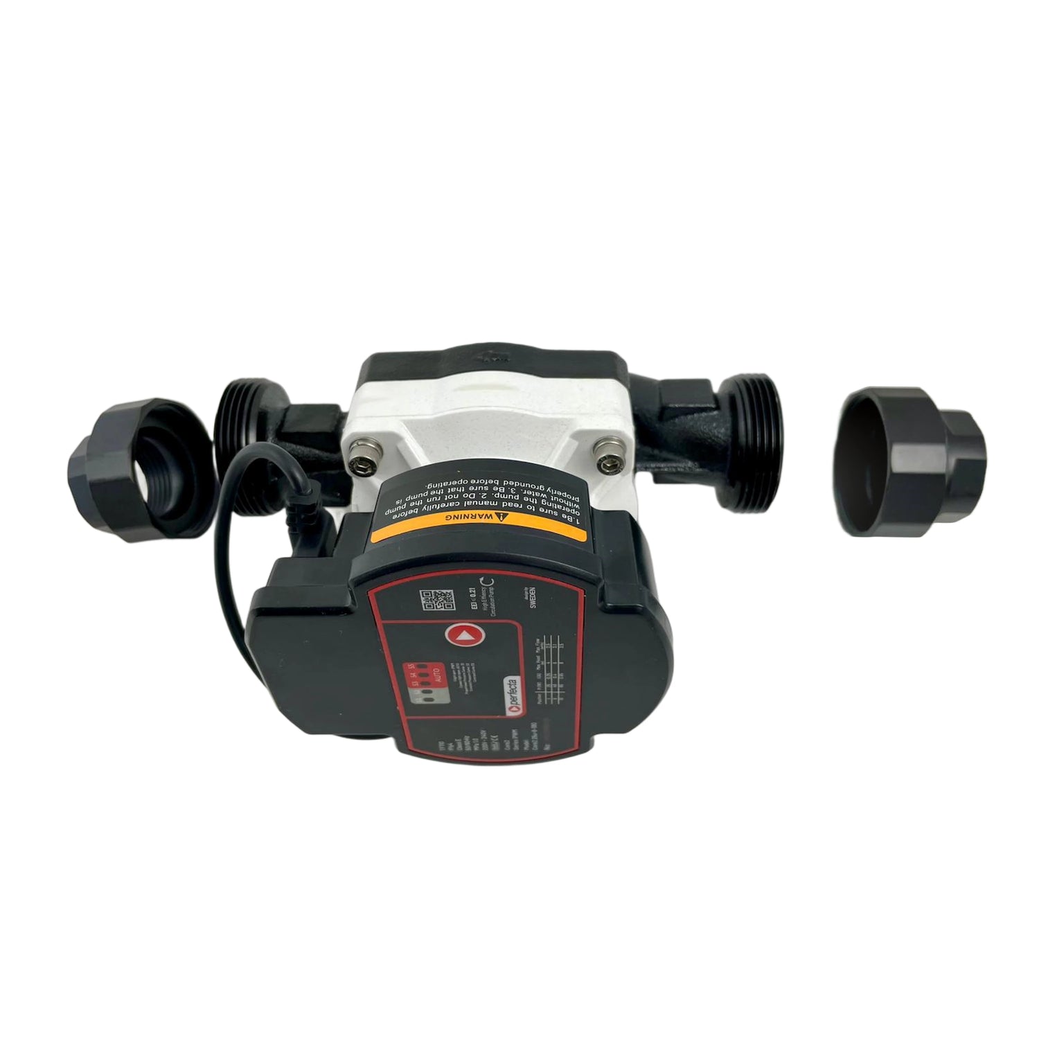 A bomba é entregue incluindo uma conexão roscada (1" rosca fêmea e 1 1/2" porca de união), vedações, plugue de conexão e instruções de operação - tudo está disponível para comissionamento rápido.