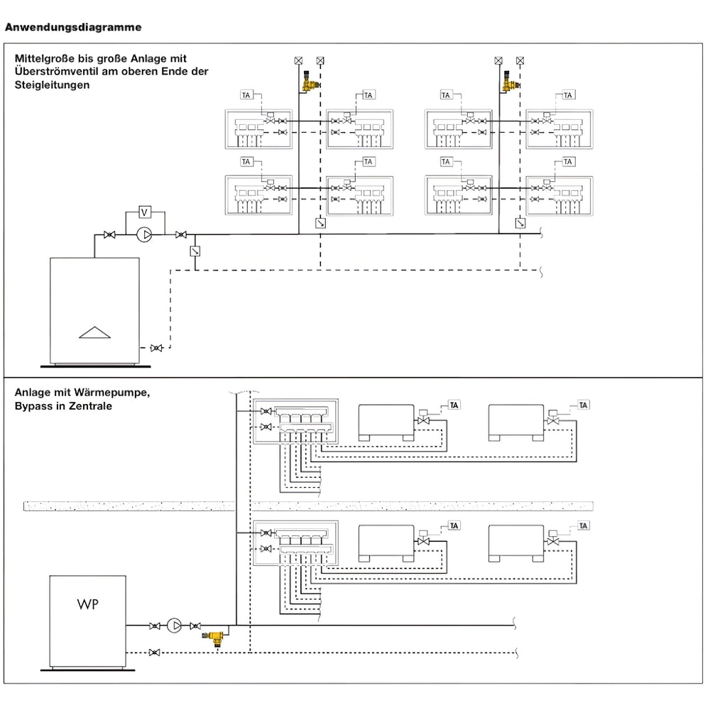 Potrivit pentru sisteme de încălzire, răcire și pompe de căldură cu debit variabil. Deosebit de util în sistemele cu mai mulți consumatori, actuatoare sau pompe cu turație controlată pentru a asigura o limitare minimă a debitului și a presiunii.