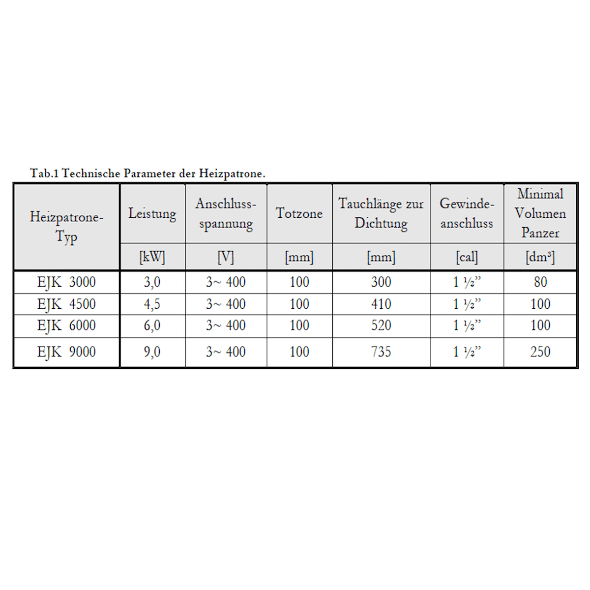 Elektrická vykurovacia tyčinka vykurovacia kazeta 6 kW s AG 1½ “400V
