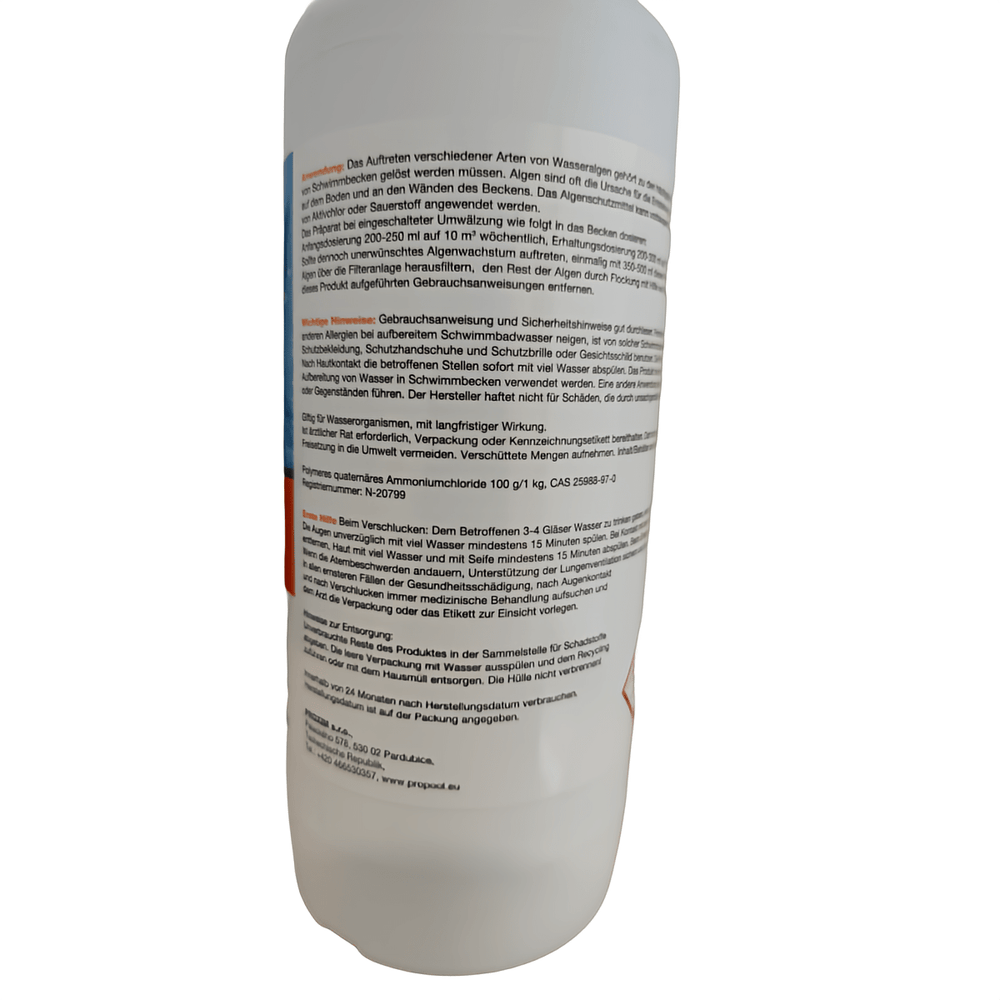 Sredstvo za zatiranje alg zanesljivo odstrani vse vrste alg v bazenu in ga je mogoče enostavno kombinirati z aktivnim klorom in kisikom. To ustvari učinkovito okolje, ki upočasni rast škodljivih bakterij in tako prispeva k dolgoročno čisti in higienski vodi v bazenu.