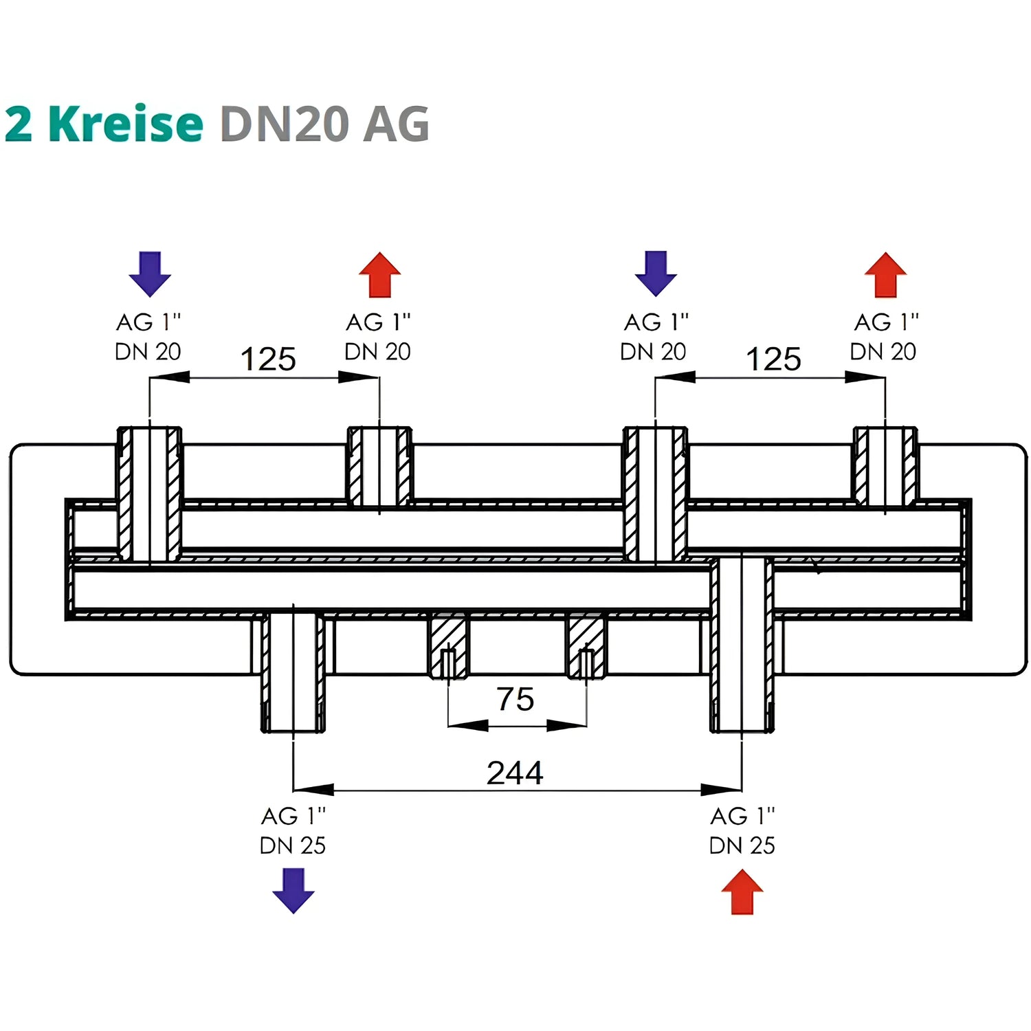 Distributionsstång 2 eller 3 uppvärmningskretsar Sunex